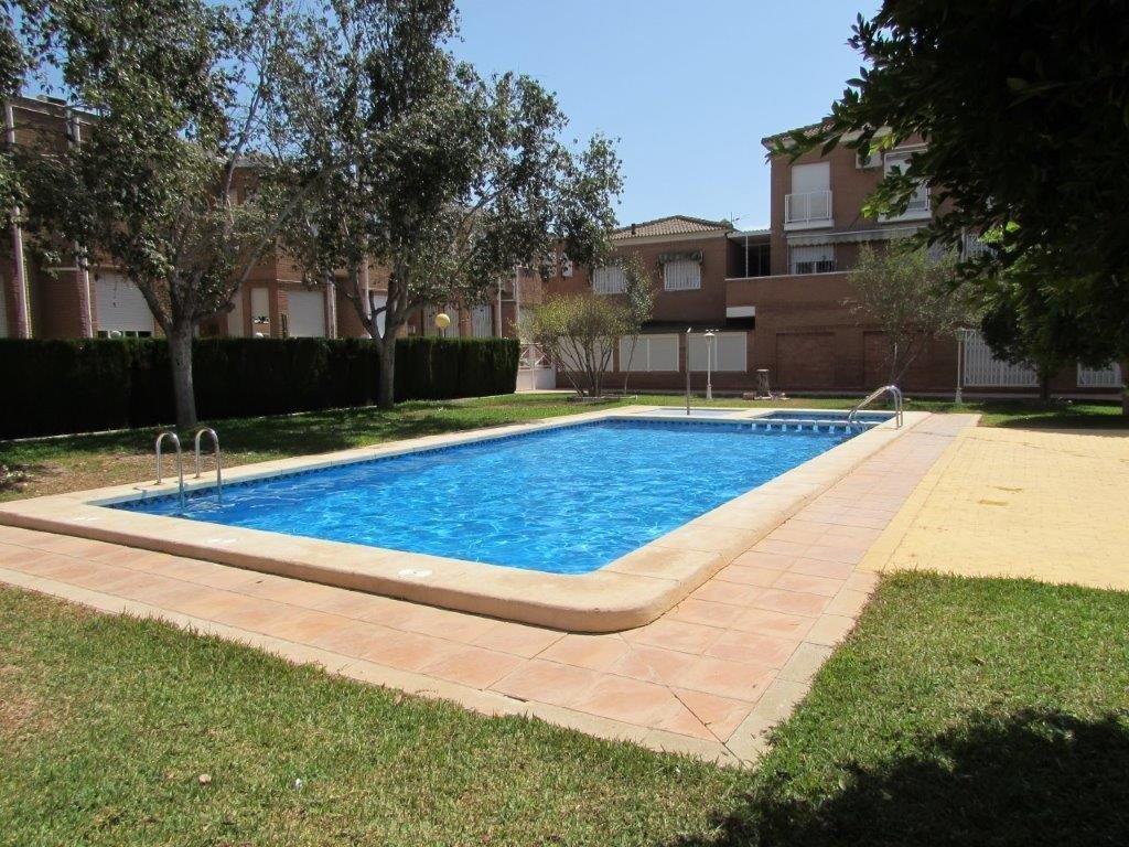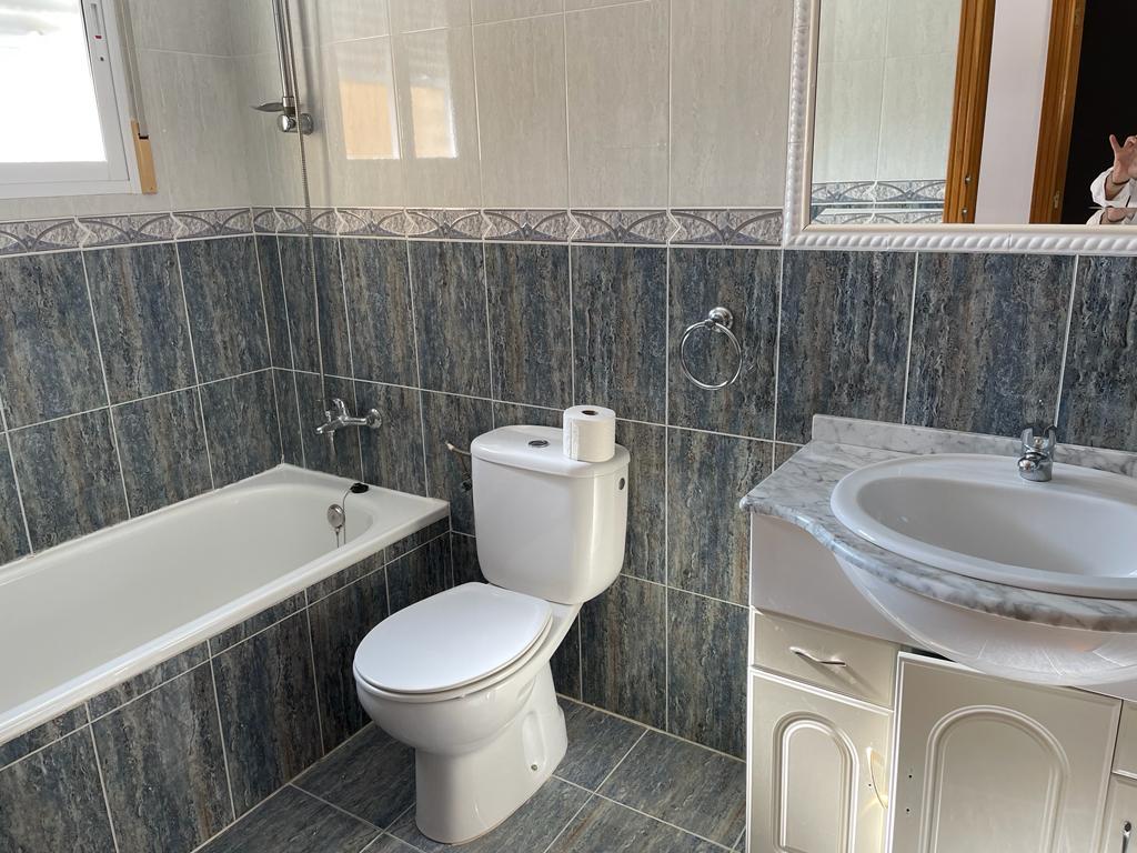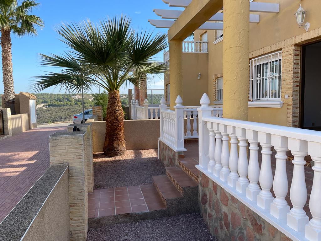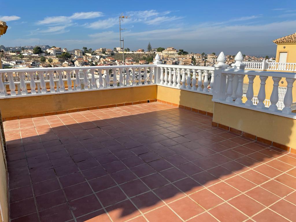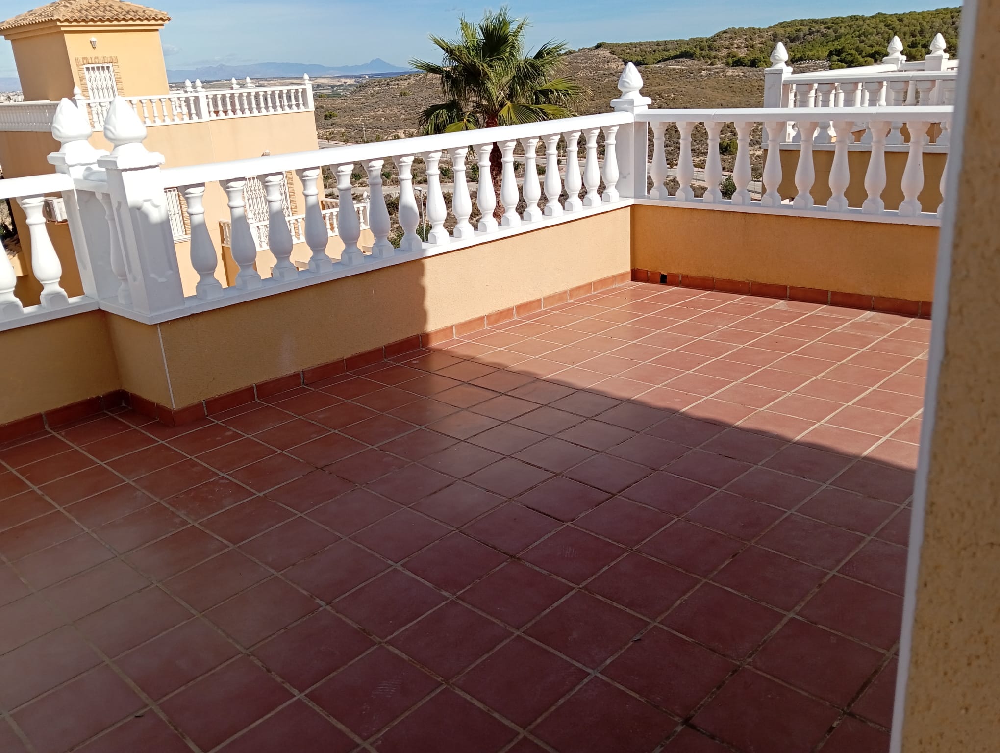 Chalet on an independent plot on 2 floors with a surface area of 125 m2, terrace-solarium GROUND FLOOR:living-dining room, fitted kitchen. Storage room. Bathroom, terrace, porch. The living room is so large and is distributed in such a way that by building a simple partition you can get one more bedroom. UPPER FLOOR: 3 bedrooms with solarium each, built-in wardrobes, 1 bathroom. LARGE UPPER SOLARIUM TERRACE. hot-cold air conditioning units. Community pool for adults and children, 20 meters from the house. Own parking next to the house. Neighbours living all year round. Spectacular views of the mountains and the urbanization. CONDITION: The house has been completely reviewed, repaired and painted and its general condition is magnificent.