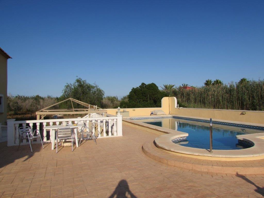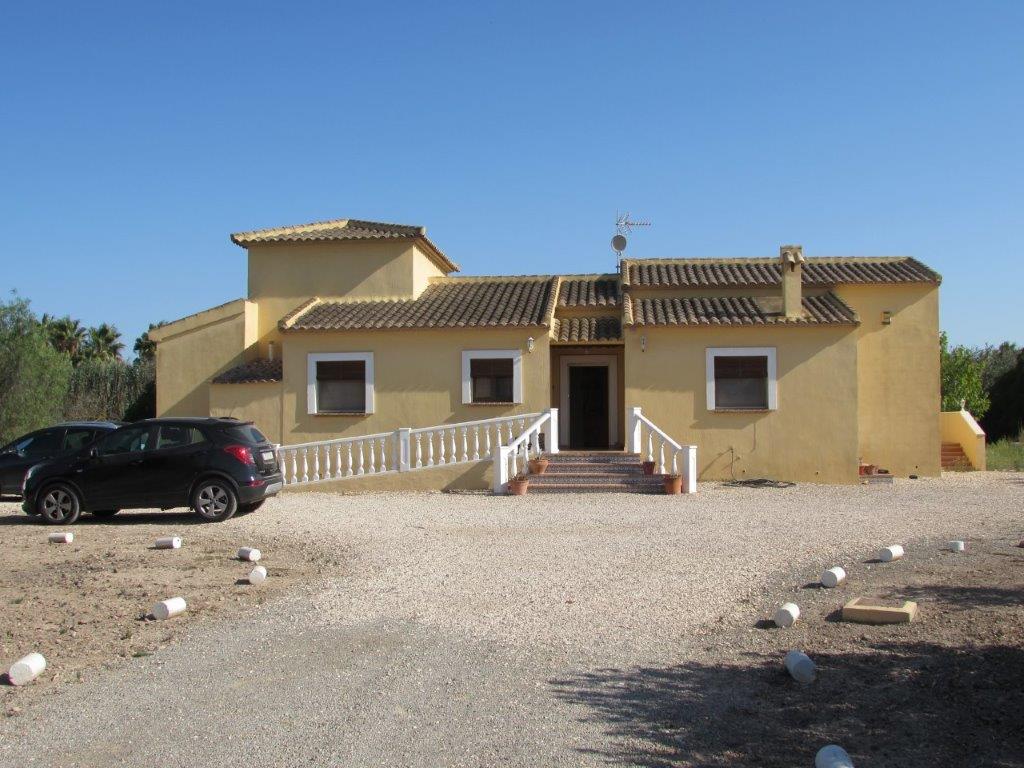 COUNTRY HOUSE on 10,000 m2 plot in Catral, ALICANTE. Built with quality modern materials in traditional Spanish style with interior/exterior insulation. High ceilings, wooden beams, ceiling fans and solid wooden doors continue the rustic theme... The property has 3 bedrooms, one en-suite plus a family bathroom. Fully fitted kitchen opens onto lounge/diner with log burner leading to covered porch and terrace surrounding 10x5 m pool. Plenty of room to sunbathe or find shady spots under mature shrubs and fruit trees. Electric entrance gate opens to gravel drive and large brick built garage with workbench and electric shutter. This is one- level living and entirely wheelchair-friendly. All legalities have been complied. Mains water, electricity and EU standard septic tank. Overall, the focus of the house is on the high quality of its Spanish traditional style and the superior structure of the build. Also, being on around 10,000 m2 plot, there is a lot of potential for you to “put your mark” on the property to make it truly yours! Price 315000€