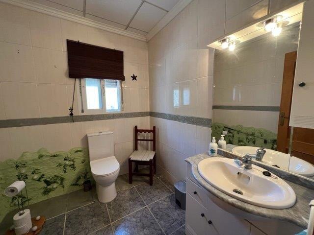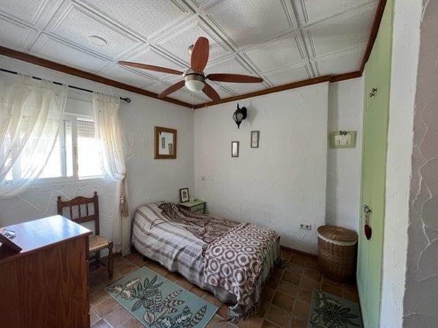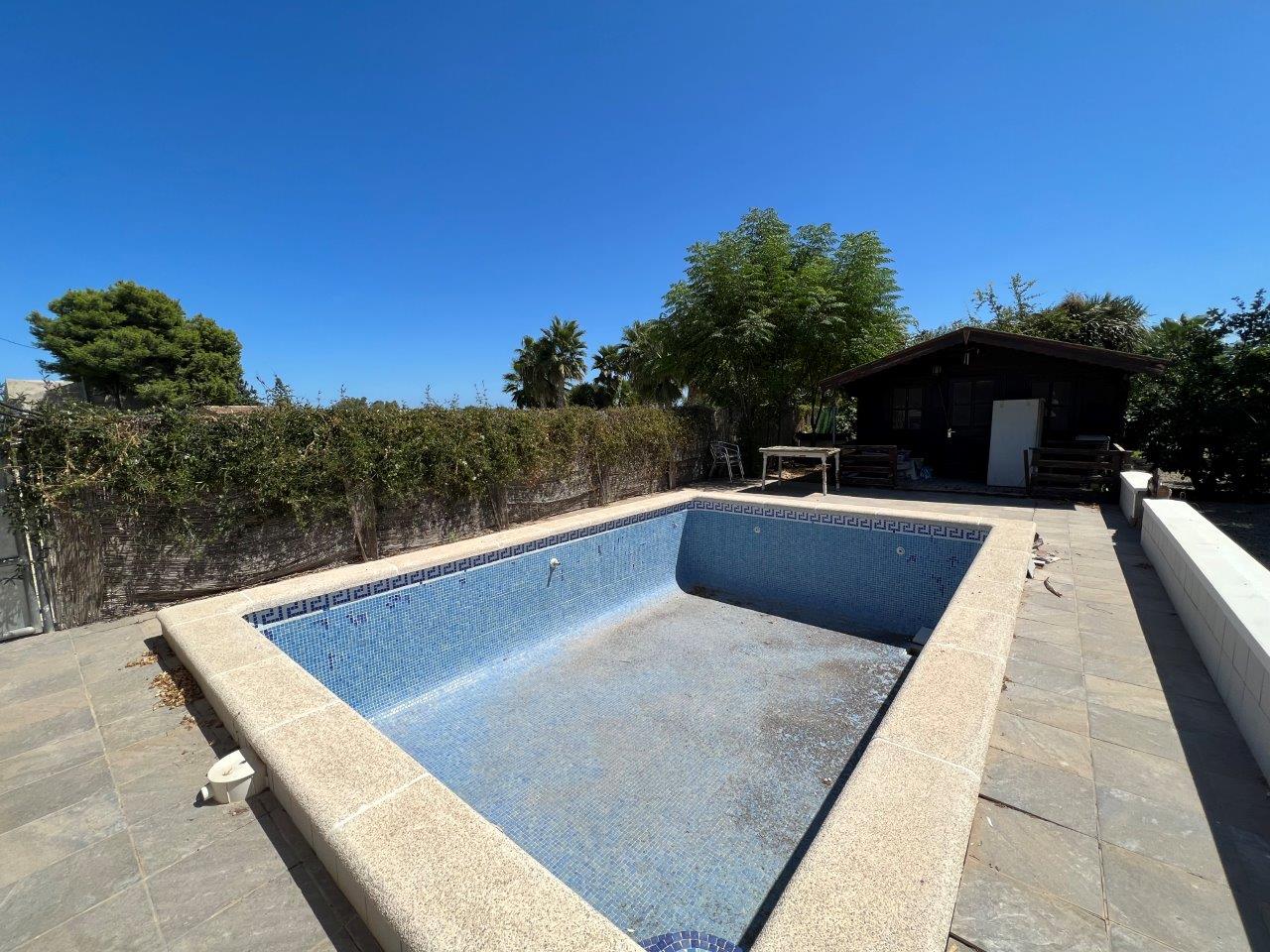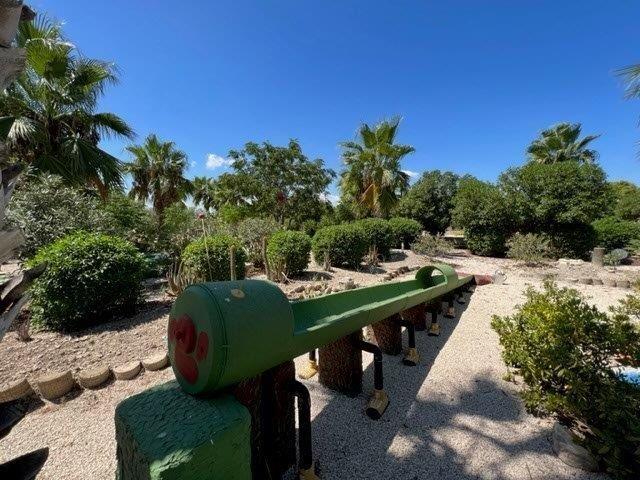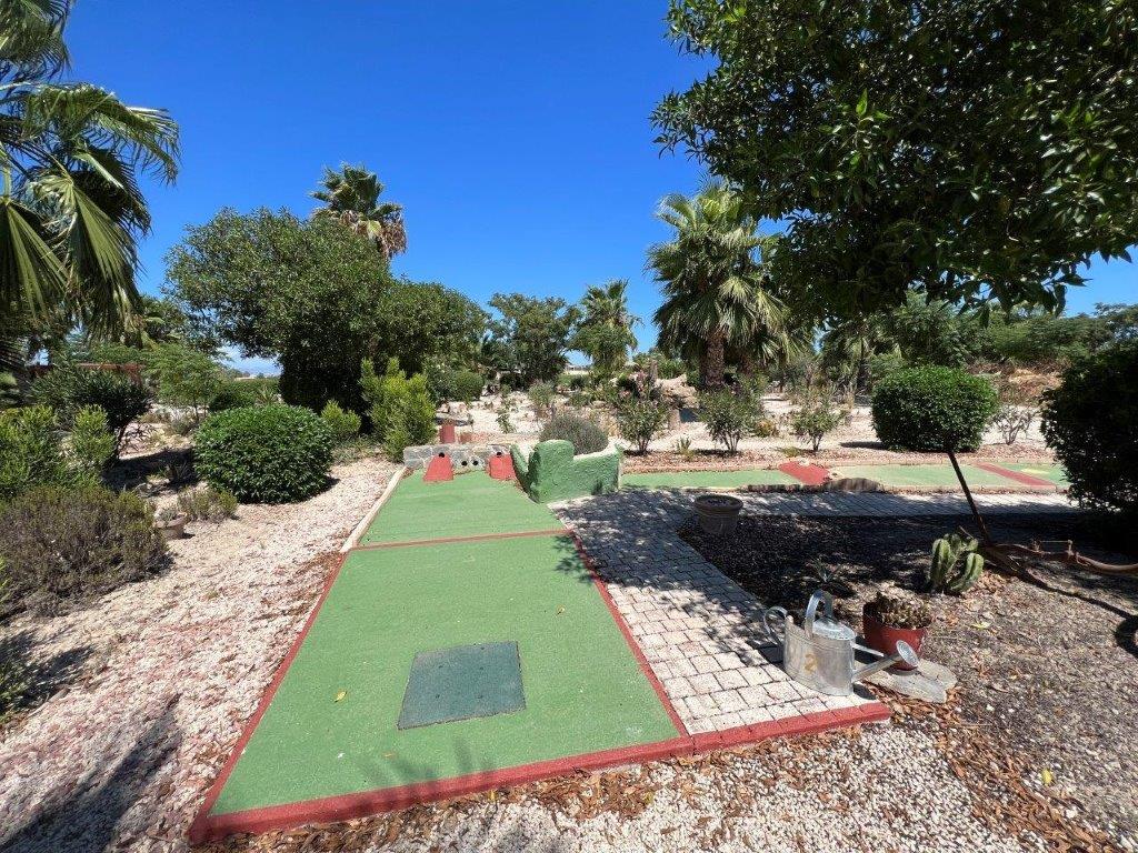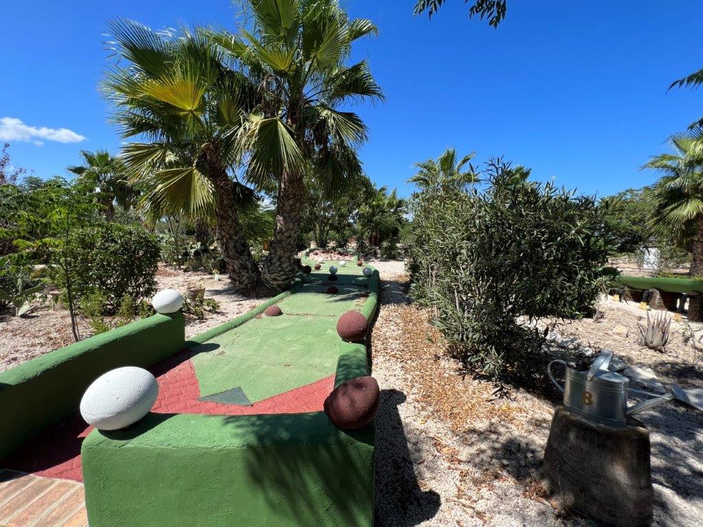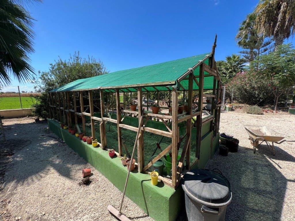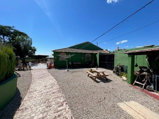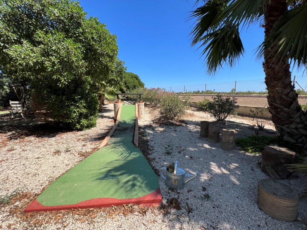 Stunning country house of 179 m2 on a plot of almost 10,000 m2 located in a quiet lane on the borders of Dolores/San Fulgencio ALICANTE. This unique property has 2 bedrooms with built-in wardrobes, main bedroom has ensuite facilities, lounge with beamed ceiling feature and log burner, kitchen with white goods, utility room, plus 2 additional separate toilets suitable for disabled access. A covered terrace leads to the immense outdoor space with a pool, gardens, pond and even a mini golf course and documentation for business licence has already been submitted. Only 15 minutes’ drive to the beach and 30 minutes to Alicante/Elche. A fantastic opportunity to buy a very unusual house and land which could also have business potential. Price €215,000