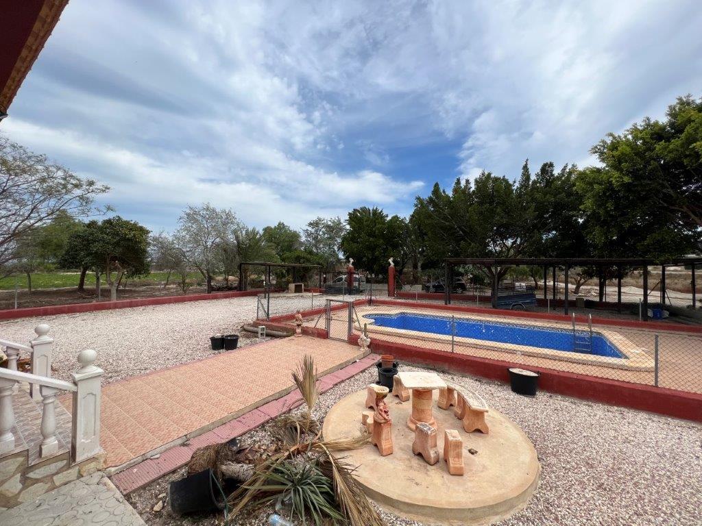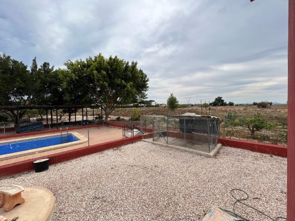 CASA DE CAMPO con impresionantes vistas en El Molar, La Marina, Alicante. Construido con materiales de calidad en estilo tradicional español en una parcela de 11826m2 y a solo 5 minutos en coche de la playa de La Marina. La Propiedad tiene 3 dormitorios y 1 baño. La cocina totalmente equipada se abre al salón/comedor con chimenea que conduce a un porche cubierto ya una terraza con barbacoa y fregadero. Se podría convertir un garaje integral. Hay mucho espacio para tomar el sol junto a la piscina privada de 8x4m o encontrar lugares con sombra bajo arbustos maduros y árboles frutales. Son 4 boxes para caballos con licencia para amantes de los animales. Posee potencial eléctrico trifásico y depósito de agua. Se han cumplido todas las legalidades. Red, electricidad, depósito de agua. En general, el enfoque de la casa está en la alta calidad de los materiales de construcción y su estructura superior. Además, como la parcela supera los 10.000 m2, ¡hay potencial para desarrollarla y hacerla realmente suya!