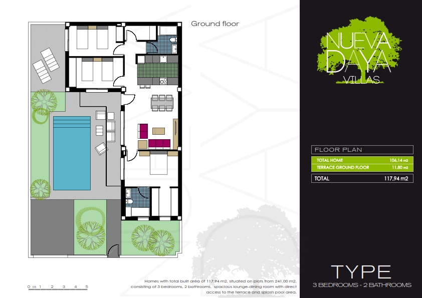 modern villa of 117.94m2 with living space all on one level, consisting of