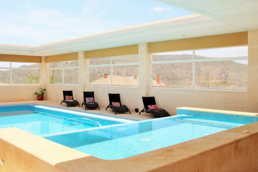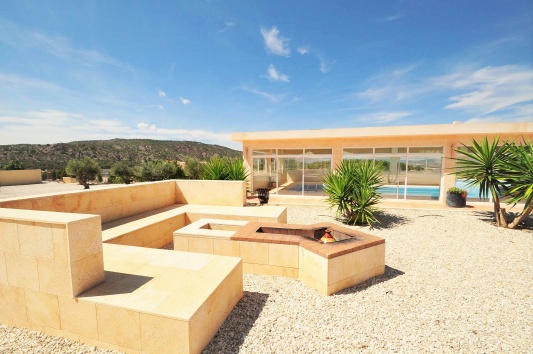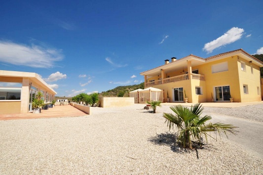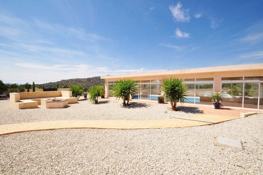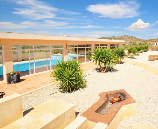 Una hermosa, espaciosa casa de campo de 2 plantas con establos en 13000m2 de parcela . 6 dormitorios, 5 baños, 2 cocinas y 2 salones. Piscina cubierta y gimnasio independiente. Calefacción por suelo radiante y aire acondicionado. Está rodeado de jardines maduros con vistas impresionantes a sólo 5 minutos de Pinoso.