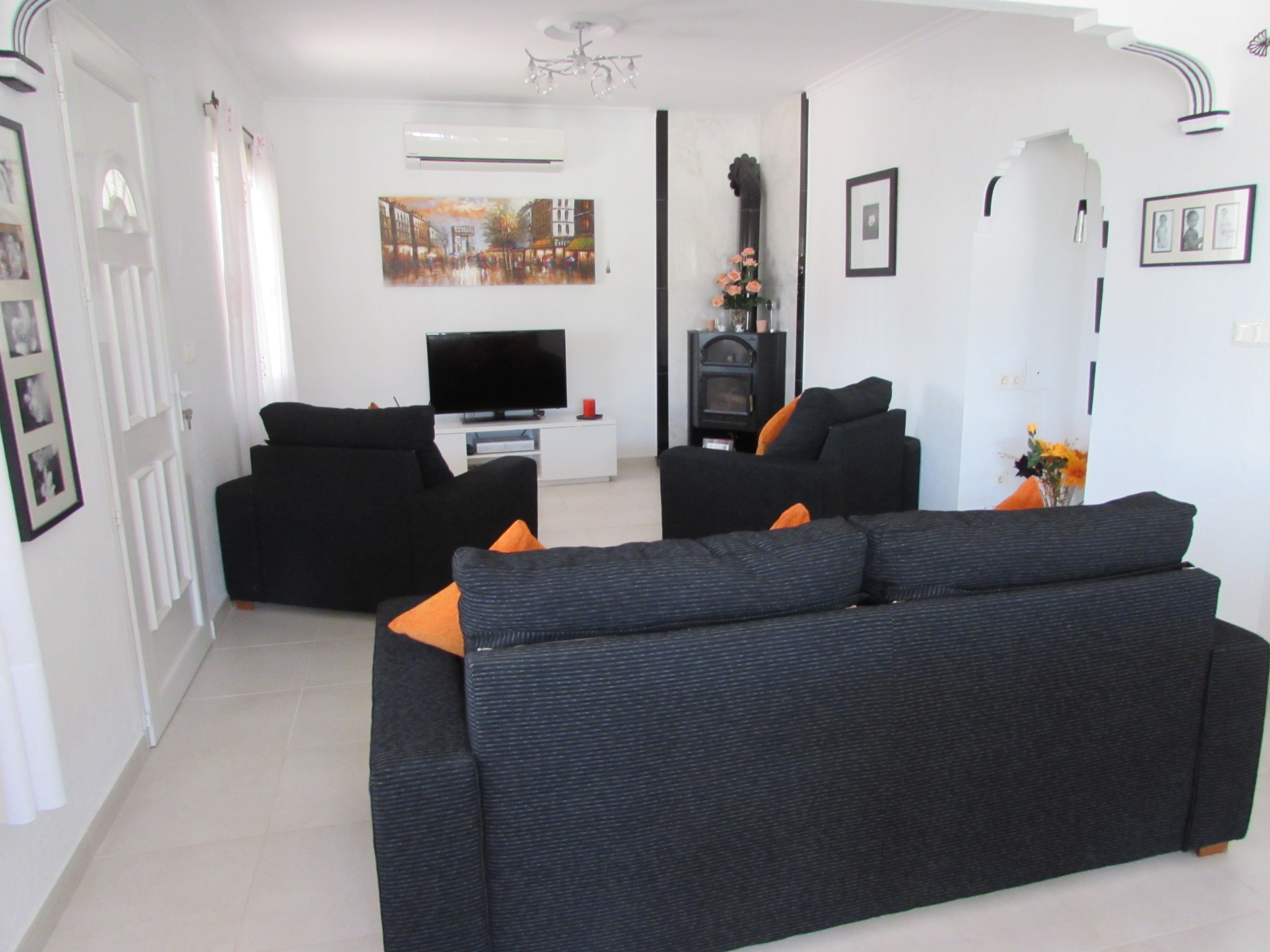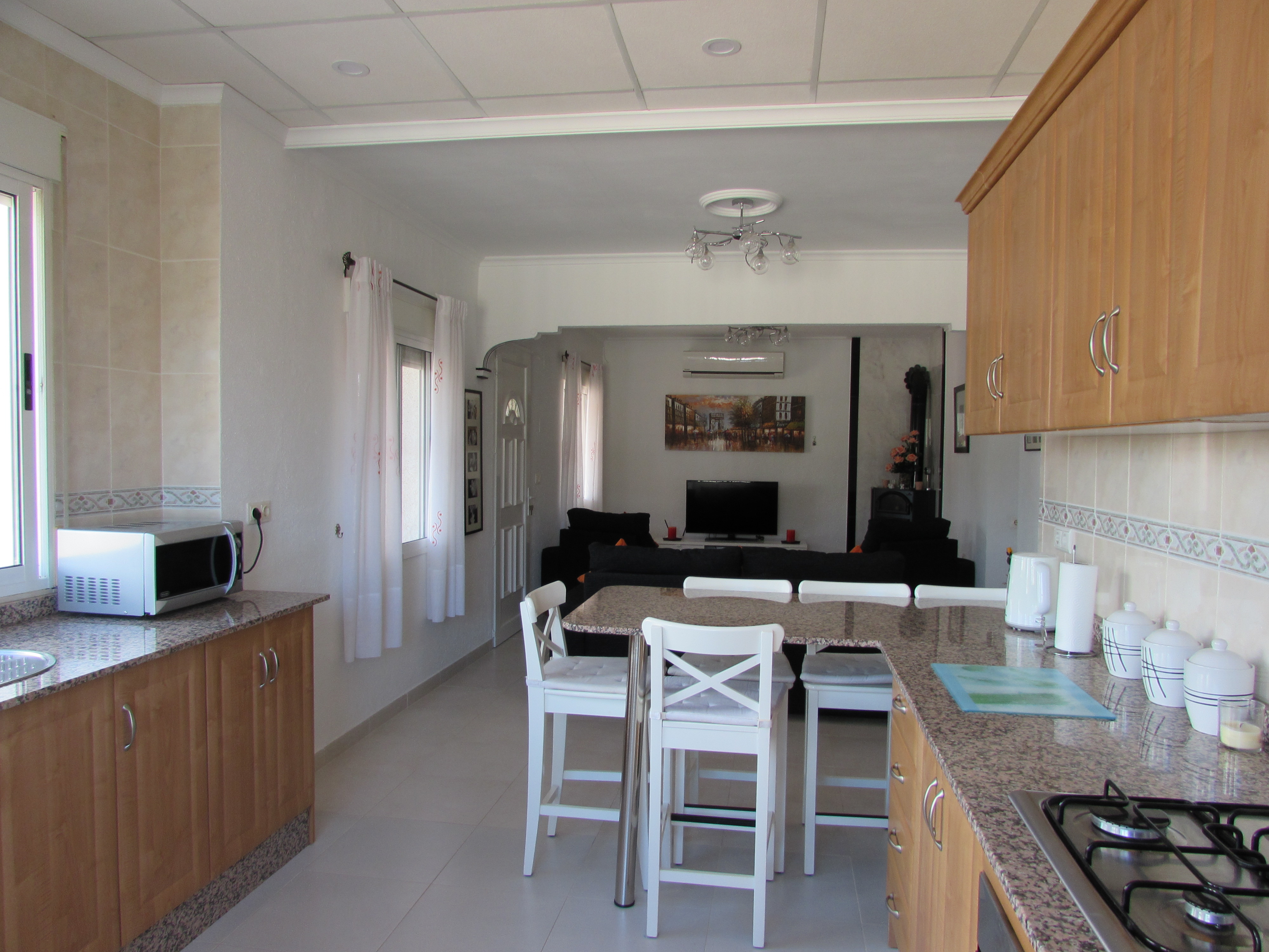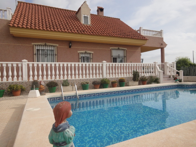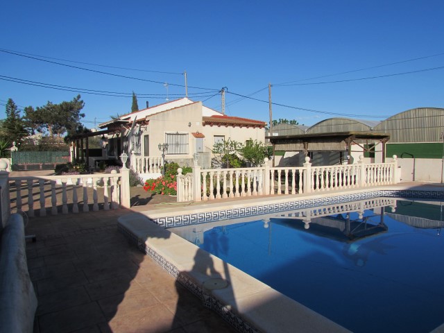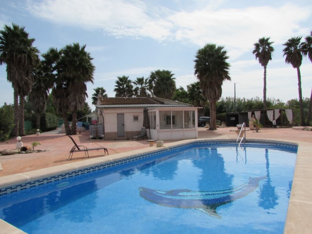 Country house with amazing mountain views. The property consist of 4 bedrooms, 2 bathrooms, 1 toilet, lounge with log fire, separate dining room, separate ktchen, large porch used as second lounge and dining room, enclosed garage, solarium, , BBQ, plenty seating area with 2500m2 fenced plot, private pool, solarium,, electric gate, alarm, .Situaded at only 10mn drive to La Marina , Guardamar Del Segura beaches and 20mn to Alicante airport.