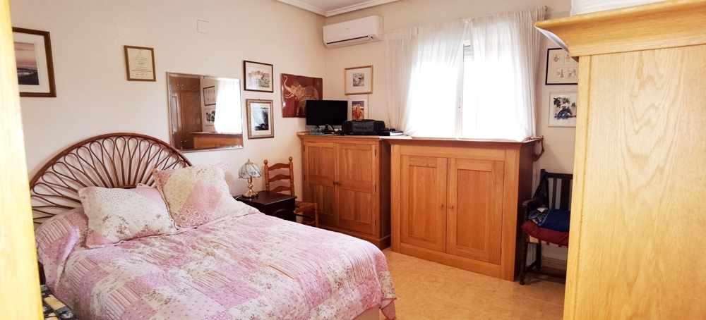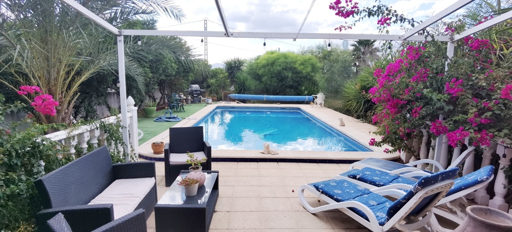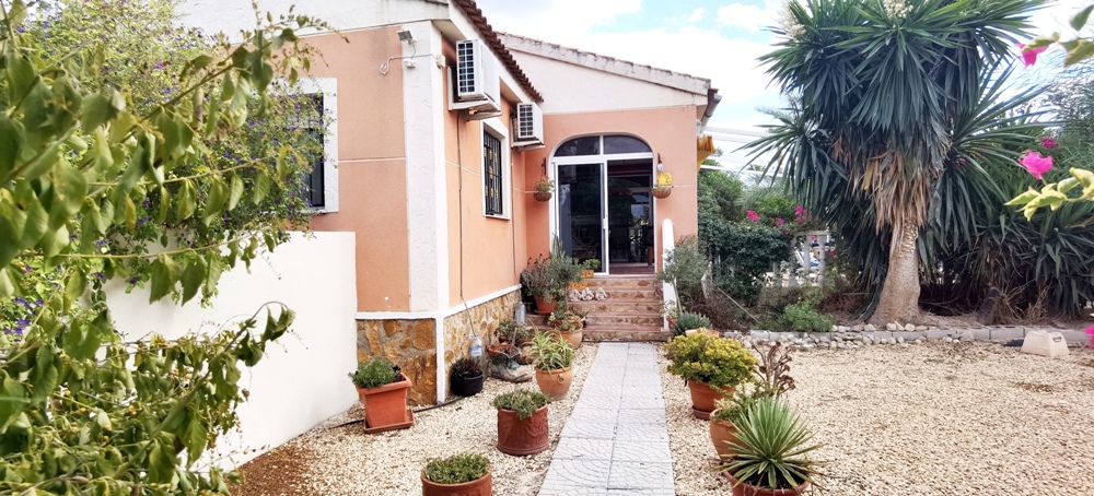 Country house with 3 bedrooms with fitted wardrobes, 2 bathrooms, separate kitchen, lounge diner with fireplace situade in nice area of Catral Camino Arroba de Hornos just 2km from the town and services . On 1,200m2 of fenced land planted with fruit and shade trees, electric entrance gate, parking for cars, summer kitchen with barbecue, 10x5m2 pool with terrace, enclosed double glazed porch , 138m2 of house .Air conditioning ducts, solar panels for hot water, the property is sold without furniture and appliances. Built in 2005 .