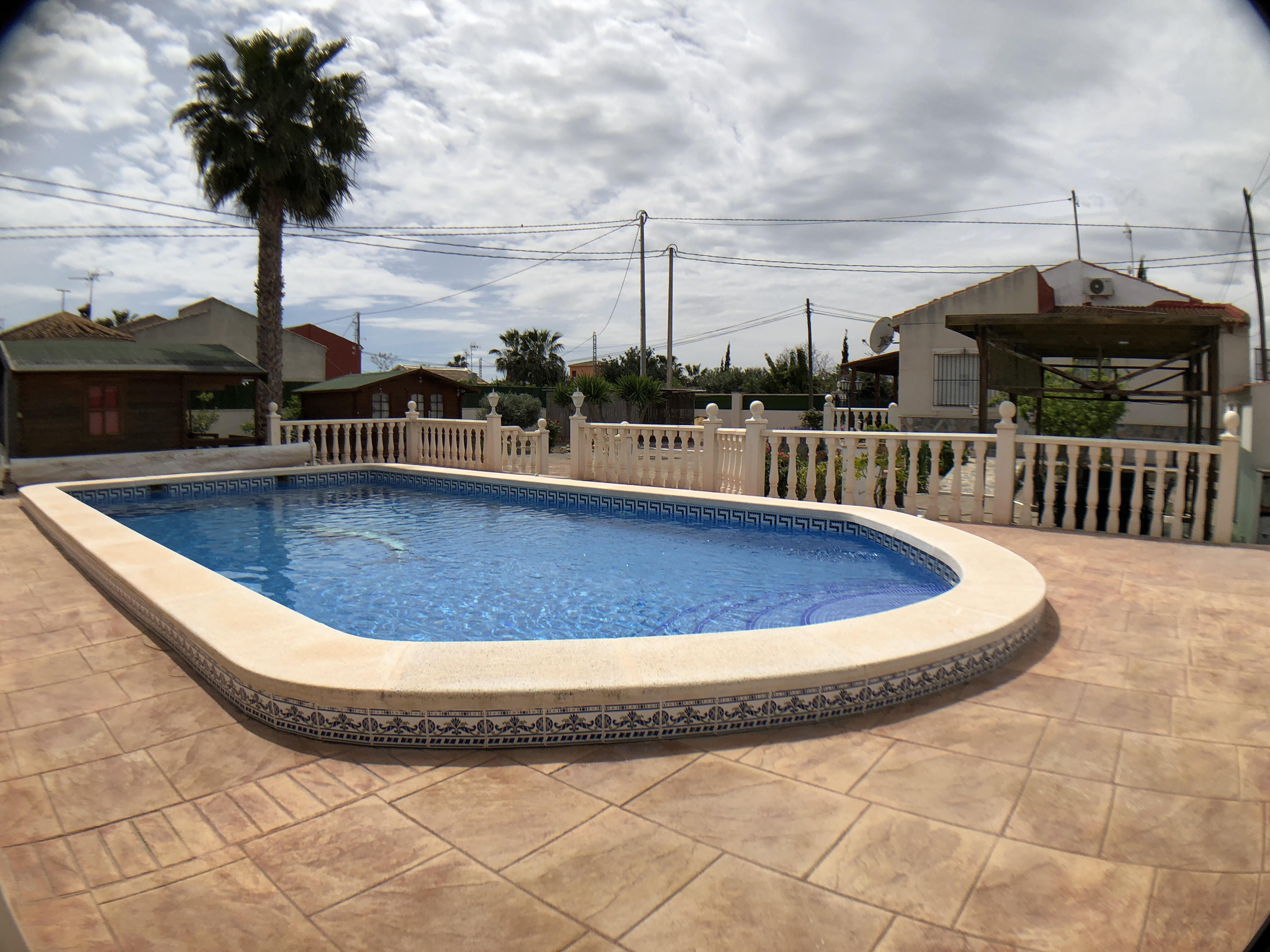 Immaculate country house on the outskirts of Dolores. Completely renovated with 2 double bedrooms and 2 bathrooms (one en-suite). Large lounge/diner with wood burner and open-plan kitchen. Aircon throughout. Set in pretty mature garden around 10x5m pool with terrace, bbq with outdoor dining area and another shower/toilet and carport. Two wooden chalets equipped with aircon provide additional accommodation. All renovation licenses are in place.(Includes license for the pool).