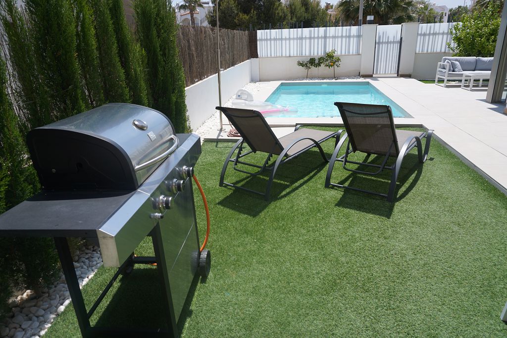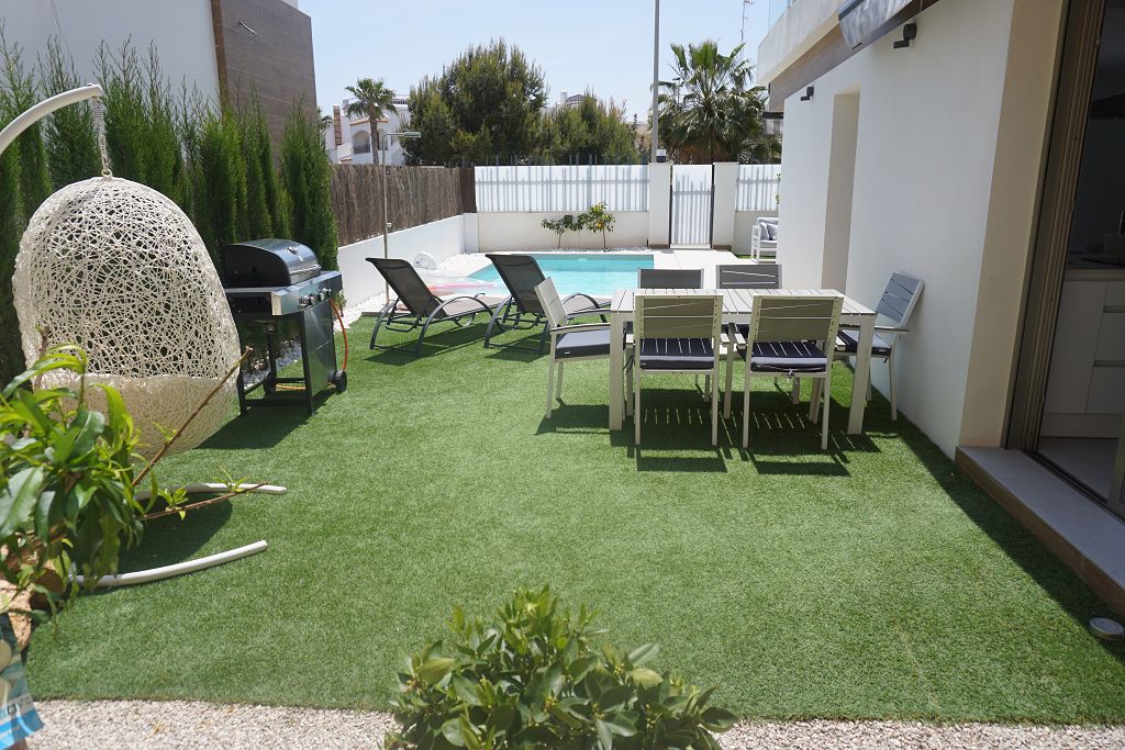 Villa of 193m2 on a private plot of 200m2 in Villamartin (Orihuela Costa) with 2 double bedrooms, 2 bathrooms one of which is ensuite, kitchen, BBQ, private parking area, solarium, swimming pool and basement with 1 bedroom and bathroom.